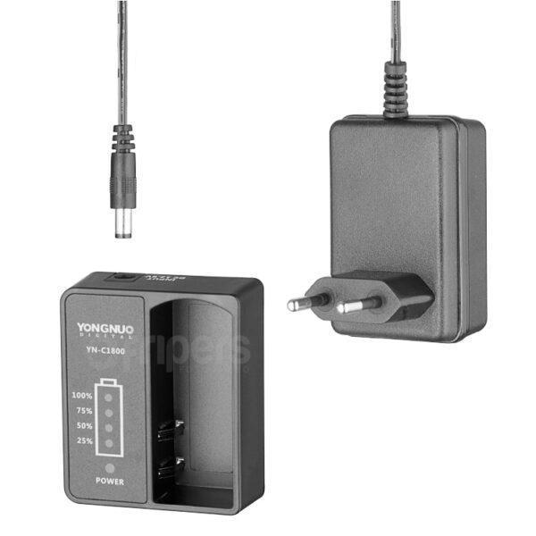 Зарядное устройсво предназначено для зарядки аккумуляторов YongNuo YN-B1800,который используется в накамерных вспышках Yongnuo YN860, Yongnuo YN862C.