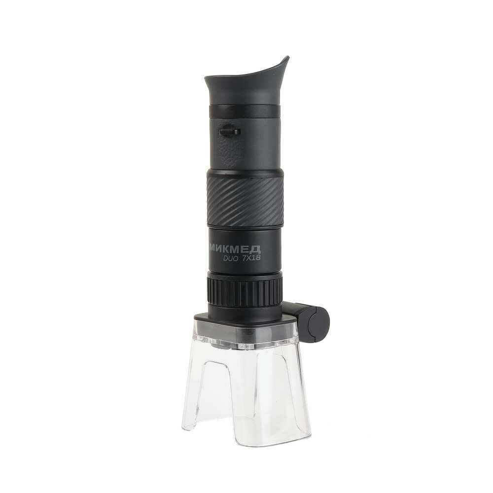 Три в одном Монокуляр с увеличением 7х. Это не что иное, как миниатюрная подзорная труба. Микроскоп с увеличением 25х. Если присоединить к монокуляру вторую деталь комплекта – микроскопную насадку, получается микроскоп. Лупа с увеличением 4х. Микроскопная насадка может быть использована отдельно от монокуляра в качестве лупы с точным позиционированием и подсветкой.Яркое и близкое изображение