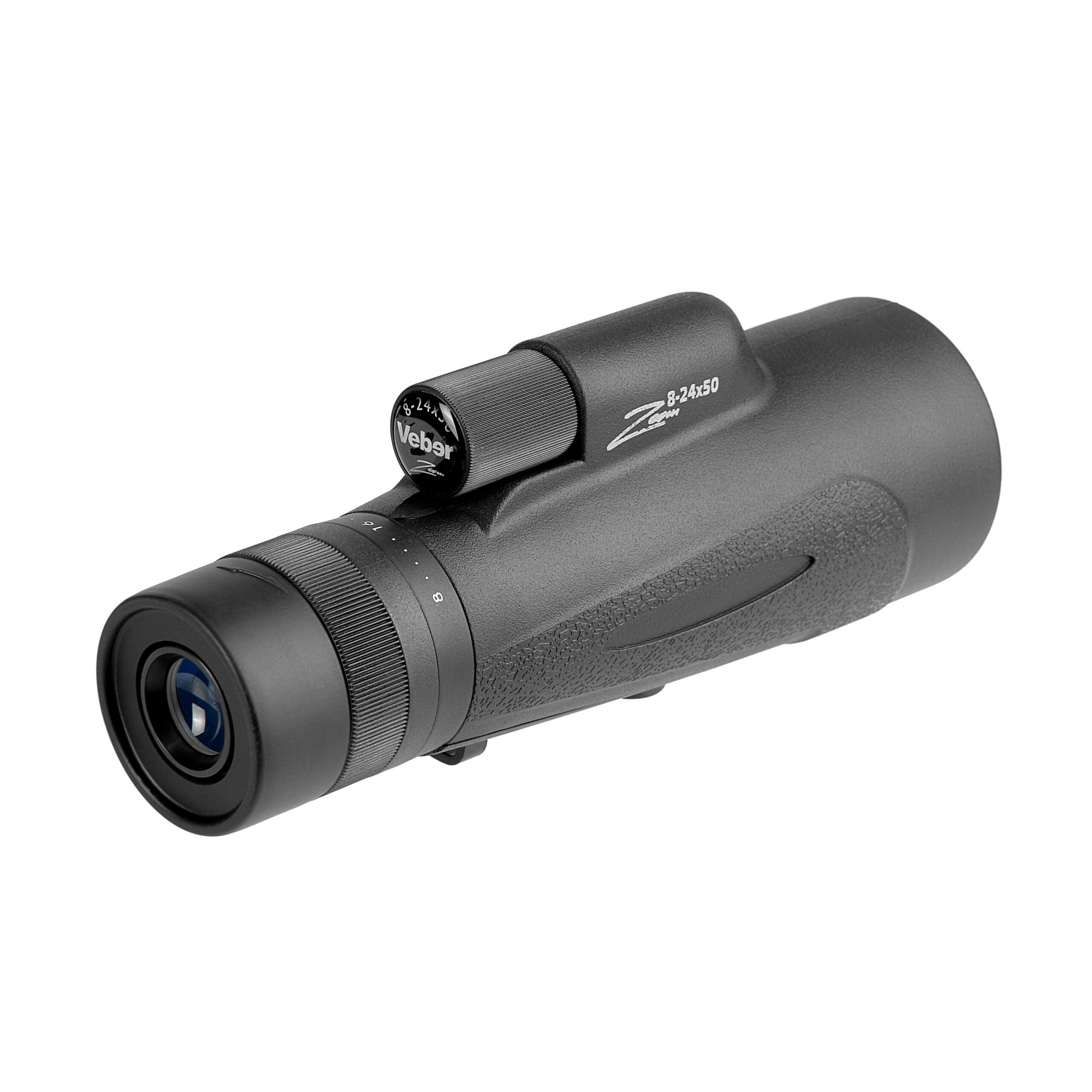 Монокуляр Veber ZOOM 8-24×50 – компактный оптический прибор с переменным увеличением от 8х до 24х. Устройство предназначено для охотников, туристов, участников поисково-спасательных отрядов или наблюдателей спортивных мероприятий.Переменное увеличение 8х-24х и фокусировка Колесо фокусировки расположено на верхней части корпуса для удобства работы с устройством одной рукой. Колесом зуммирования плавно меняется увеличение, шкала значений (8х, 16х, 24х) позволяет отследить его масштаб. Рифленая текстура колесиков не позволит пальцам соскользнуть во время настройки. Монокуляр Veber ZOOM 8-24×50 – компактный оптический прибор с переменным увеличением от 8х до 24х. Устройство предназначено для охотников, туристов, участников поисково-спасательных отрядов или наблюдателей спортивных мероприятий.