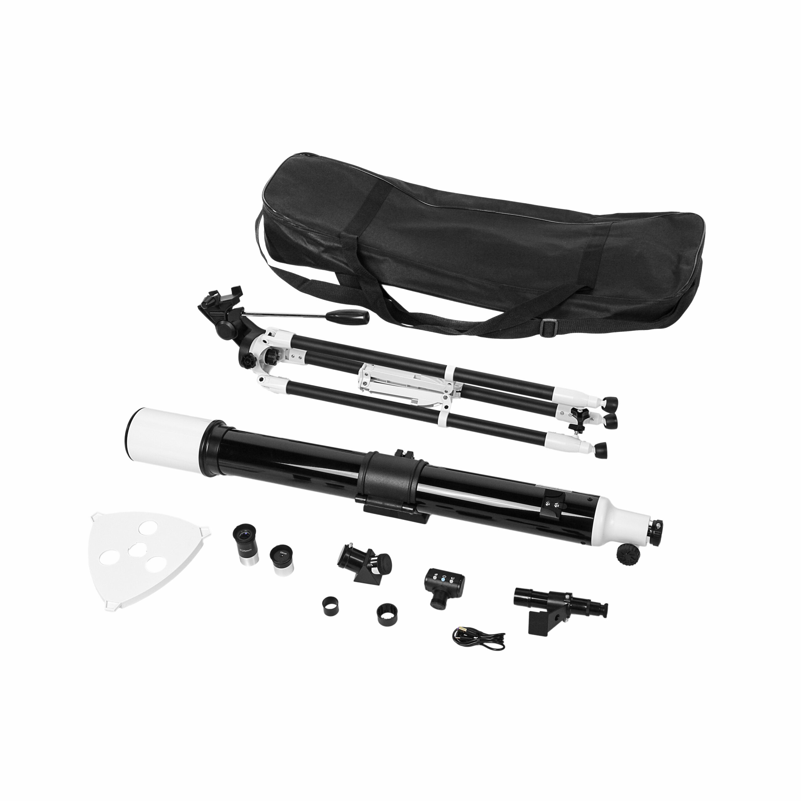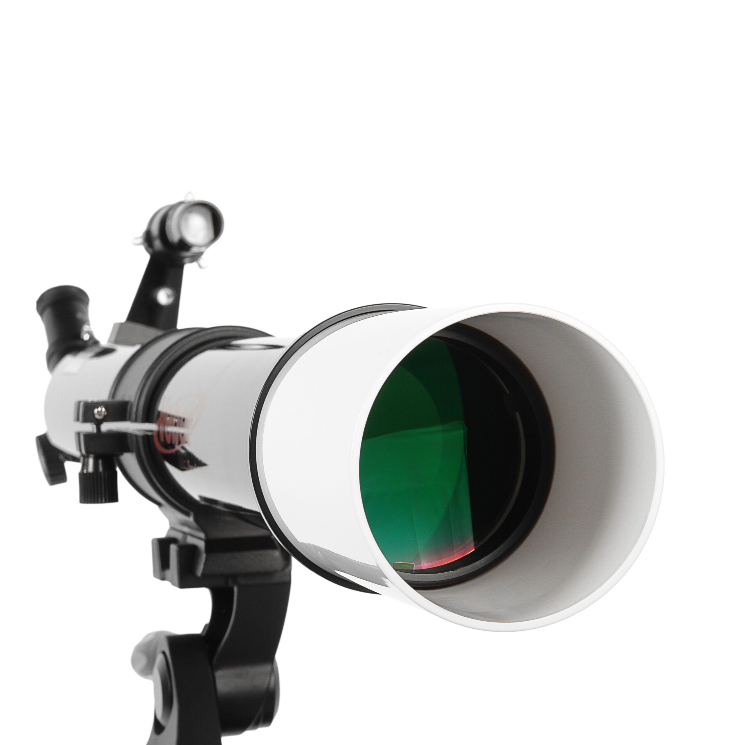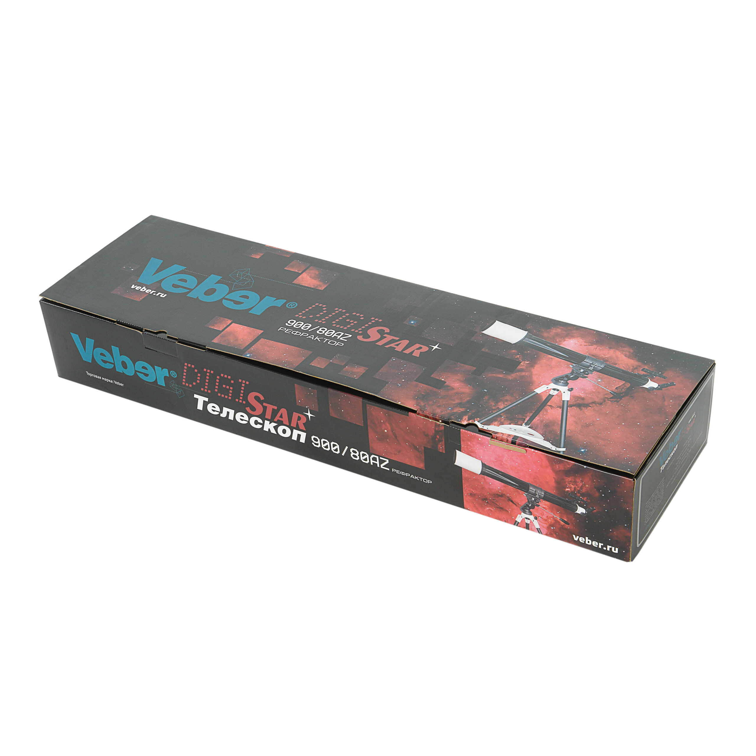 Veber DigiStar 900/80AZ состоит из двух основных узлов – линзового объектива, собирающего световые лучи, и окуляра (сменного, цифрового или оптического). Апертура 80 мм и относительное отверстие f/11,25 обеспечивают телескопу достаточную светосилу для наблюдения Луны, Венеры, Марса, искусственных спутников Земли и других объектов ближнего и дальнего космоса.