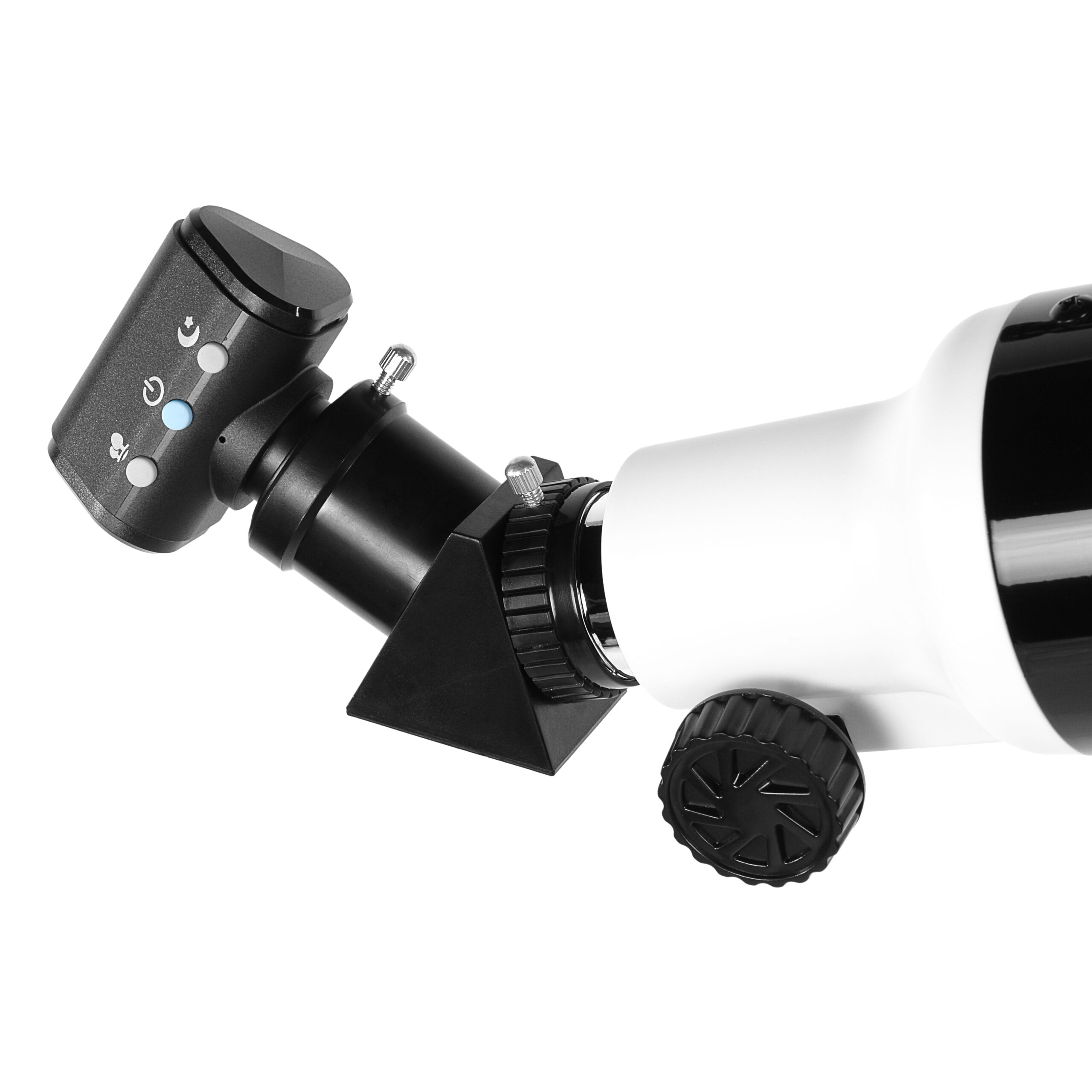 Цифровой окуляр позволяет сохранять фото и видео наблюдений. Возможна регулировка яркости, контраста, насыщения, RGB в диапазоне 0-100%. Имеет фильтр для ИК-излучения, что улучшает качество изображения. Оптический фильтр блокирует свет в диапазоне 715–1100 нм (T93%). Оптическое увеличение окуляра – 0,3х, цифровое – 2х.